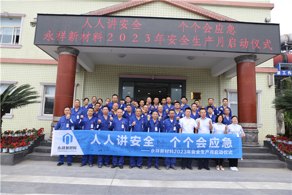 今年6月是第22個全國“安全生產月”,為組織做好2023年安全生產月活動各項工作,通過安全生產月活動進一步強化安全生產管理工作,達到“以月促年”的目的, 5月30日,永祥新材料舉行“人人講安全、個個會應急”主題安全生產月啟動儀式,公司總經理廖萬能、總經理助理唐祝軍、副總工程師吳銘生,各部門負責人及夜班下班員工、長白班員工參加啟動儀式。