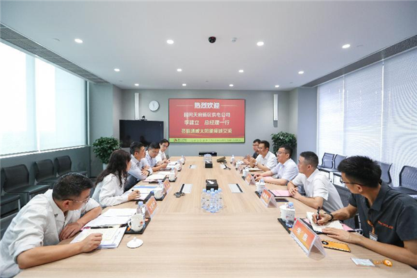 5月30日,國網天府新區供電公司總經理李建立一行蒞臨通威太陽能雙流基地座談交流,國網成都市雙流供電公司總經理邵霄,國網天府新區供電公司副總師、營銷主任羅瑪、辦公室副主任趙小華,國網成都市雙流供電公司五級職員王志倫等出席會議,通威太陽能總經理周華攜雙流基地廠務部相關負責人熱情接待并座談。