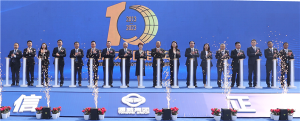 儀式上,劉漢元主席帶領(lǐng)集團、股份管理總部及各體系高管共同上臺啟動了通威集團2023年企業(yè)文化建設工作暨通威太陽能十年慶系列活動。