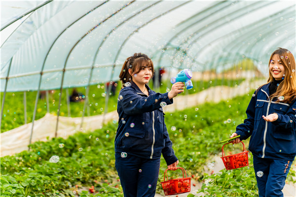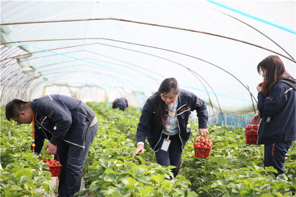 各基地活動現場,氣氛熱鬧非凡。空港花田里春風陣陣,花香飄逸,各位壽星齊聚草坪,分成6組進行團體游戲,傳水杯、搶凳子玩得不亦樂乎,精美的水果、小零食與奶茶隨意享受,好不愜意;草莓采摘基地里,紅艷艷的草莓泛著香甜的氣息,壽星們在草莓園里一邊采摘一邊品嘗,大家歡聲笑語其樂融融。摘完草莓后,大家聚在一起互相協助組裝風箏零件,放飛風箏。每一位員工都滿載而歸,每個人臉上都洋溢著幸福的笑容。