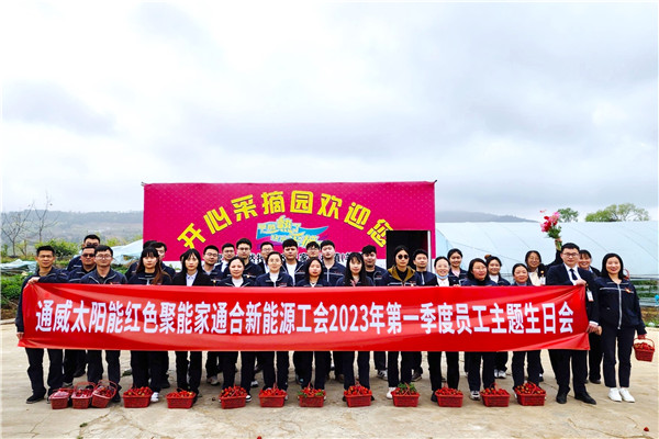 山潑黛,水挼藍,翠相攙,陽春三月,正是外出踏青的好時節。為傳播企業文化,凝心聚力,表達公司與工會的關心關愛,營造溫暖向上的工作氛圍,3月17至28日,通威太陽能安徽公司、雙流基地、眉山基地、金堂基地及通合項目相繼舉辦2023年第一季度員工生日會,各基地壽星們歡聚一堂,通過春日賞花、采摘草莓、放風箏、露營燒烤各項活動,在陽光明媚的春日好光景里,與大自然來一番親密接觸,共度歡樂時光。
