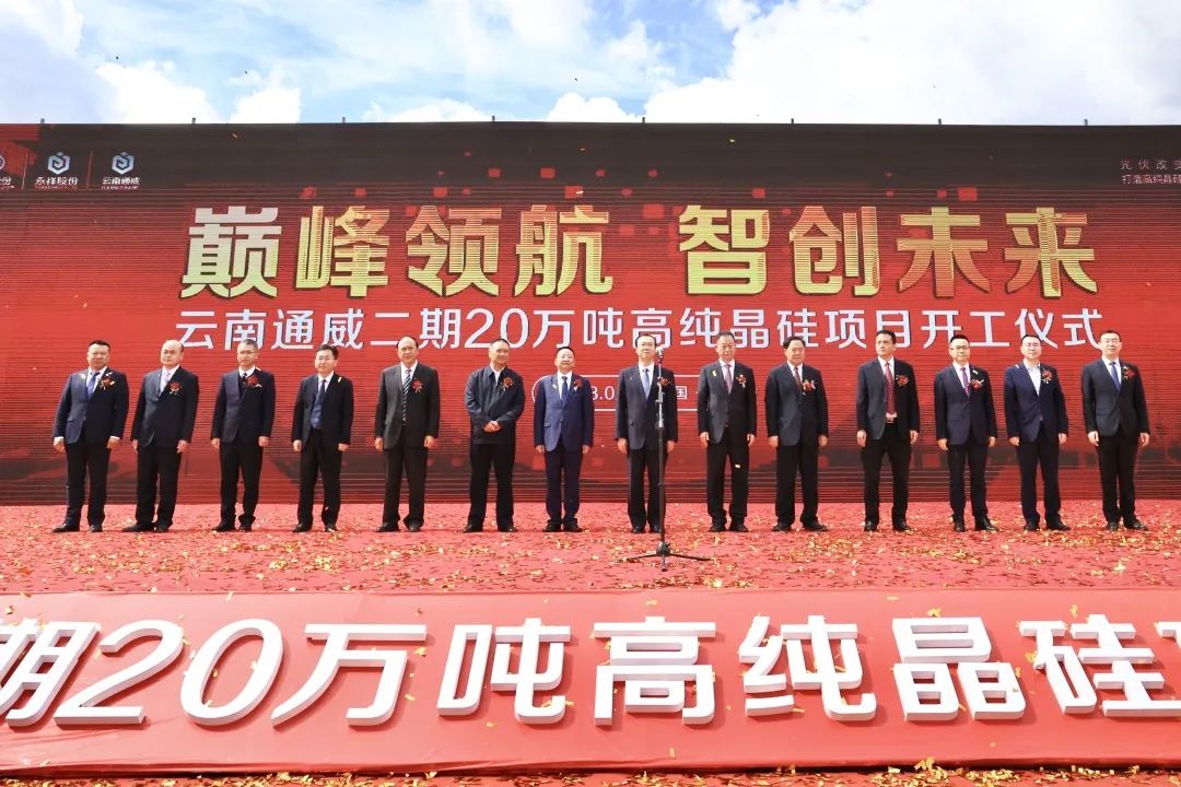 陳銳市長在致辭中表示,在全省上下深入學習貫徹黨的二十大精神、全國兩會精神,全面落實省委“3815”戰略發展目標之際,保山產業園區隆重舉行云南通威二期20萬噸高純晶硅項目開工儀式,意義重大。穩定運行中的云南通威一期項目,是現代產業體系建設中政企合作的典范,助推保山在全省率先形成了從工業硅到單晶硅的綠色硅前端產業鏈。本次落地開工的云南通威二期項目,是省政府確定的2023年“重中之重”項目,將秉承重商、親商、敬商、利商的理念,一切圍繞項目轉、一切圍繞項目干,全力營造有利于項目建設的優質環境。各級政府部門將緊盯建設目標,靠前發力,按時序提供以要素保障為重點的各項服務,加快完善配套基礎設施,全力支持企業高標準建設、高效率推進,把云南通威二期項目建成一流工程、標桿示范,創造新的“保山速度”“通威速度”。 據了解,云南通威二期項目是高純晶硅領域全球首個20萬噸級的項目,也是全球高純晶硅領域首個投資過百億的項目。目前,通威高純晶硅年產能達23萬噸,全球市場占有率超過25%,位居全球第一。今年底,產能將提升至35萬噸。根據戰略規劃,在2024-2026年,通威將形成80-100萬噸高純晶硅產能規模,持續引領行業發展。