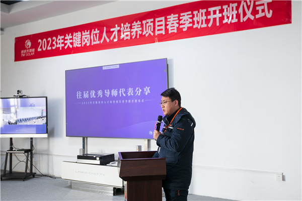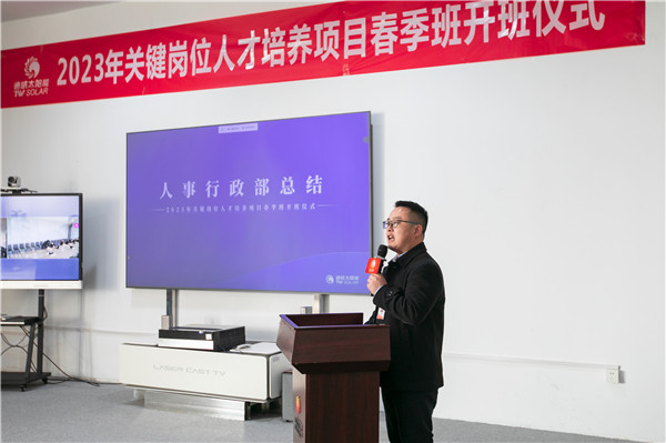 為持續夯實公司基礎人才隊伍,有效保障內培人才高效高質供給,3月3日,通威太陽能(合肥)有限公司2023年關鍵崗位人才培養項目春季班開班儀式成功舉行,各生產體系主要部門負責人及人才培養項目春季班導師和學員代表到場參加活動。