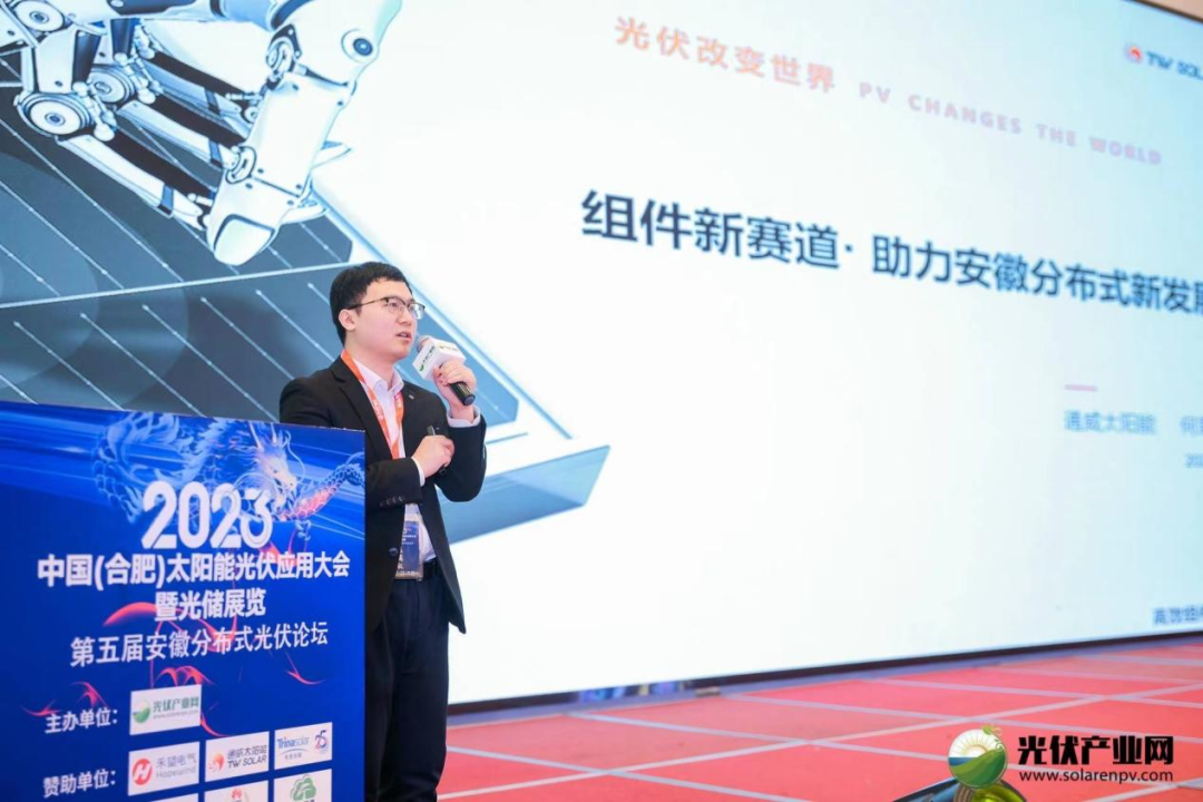 通威太陽能組件業務相關技術負責人何梟飛作主題演講 何梟飛表示,通威擁有先進的過程質量管理規定、完善的客戶服務體系以及強大的后期維護團隊。目前,通威P型、N型家族系列產品已遠銷海內外,讓越來越多的客戶和地方享受到了通威的“綠色資源”。安徽作為光伏大省,擁有廣闊的分布式光伏市場、完善的光伏產業供應鏈,通威將持續優化在皖布局,助力安徽光伏產業高質量發展。
