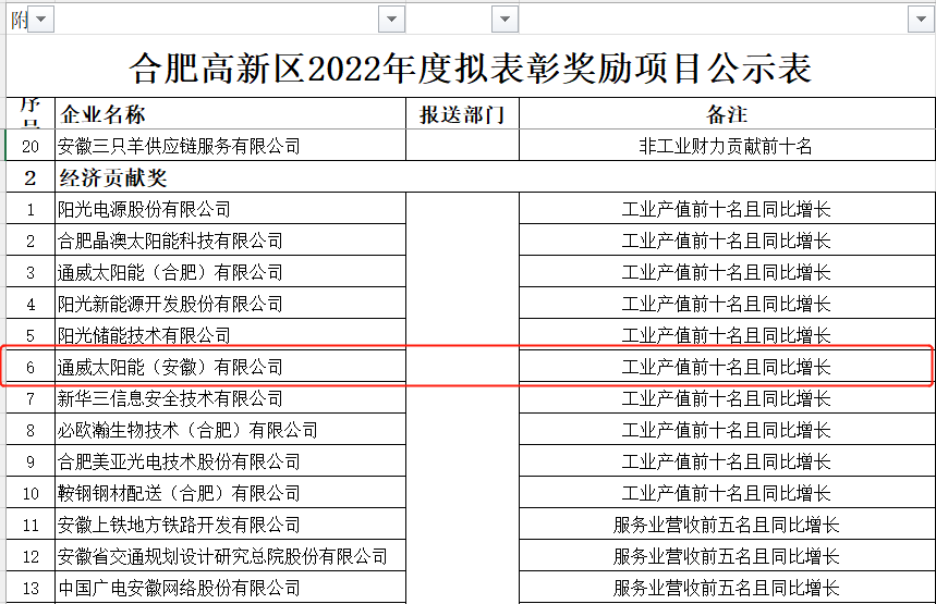 近日,合肥市高新區(qū)經(jīng)濟發(fā)展局公布了“合肥高新區(qū)2022年度表彰獎勵項目”名單,通威太陽能(安徽)有限公司榮列其中,獲得合肥高新區(qū)“經(jīng)濟效益獎—經(jīng)濟貢獻獎”殊榮。