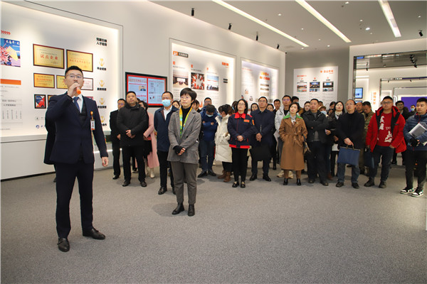 在通威太陽能智能制造體驗中心,代表團一行詳細了解了通威太陽能的發展歷程、產能規模、黨工建設等情況,并詳細了解眉山基地堅持“黨工共建”,走出“紅色聚能 光伏筑夢”的特色路徑以及產業工人隊伍建設改革及勞動技能競賽參賽情況,同時深入S1智能化生產車間,實地觀摩“智能工廠”“數字化車間”實時運行情況。