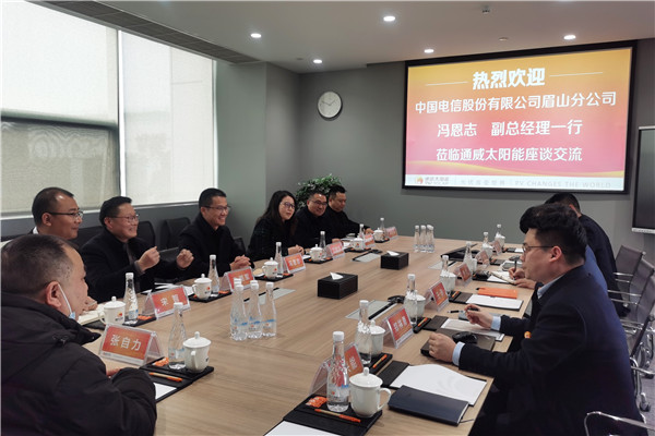 中國電信股份有限公司眉山分公司副總經理馮恩志一行蒞臨通威太陽能座談交流