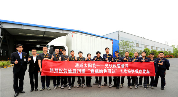 本次用于捐贈“青藏綠色驛站”昆侖山、三江源、風(fēng)火山三處站點(diǎn)的光伏組件全部準(zhǔn)備完畢,并在通威太陽能(合肥)有限公司成功發(fā)車。通威綠色能源挺進(jìn)青藏“無人區(qū)”的征程正式開始!