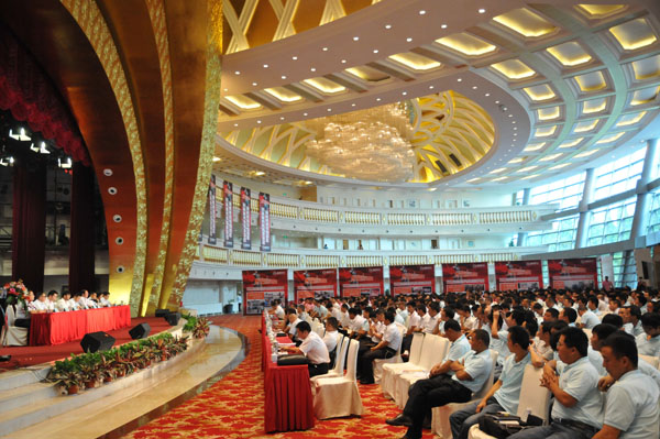 在旺季到來(lái)之際,為了更系統(tǒng)地總結(jié)上半年的服務(wù)營(yíng)銷工作中的成功經(jīng)驗(yàn),提供平臺(tái)和機(jī)會(huì)讓片區(qū)內(nèi)各團(tuán)隊(duì)相互交流學(xué)習(xí),傳播復(fù)制優(yōu)秀方式方法,為下半年的服務(wù)營(yíng)銷工作夯實(shí)基礎(chǔ),讓大家有目標(biāo)有計(jì)劃地開(kāi)展工作, “亮劍華東 舍我其誰(shuí)”通威股份華東戰(zhàn)區(qū)首屆服務(wù)營(yíng)銷群英會(huì)于6月30日-7月3日在中國(guó)第一村————華西村順利召開(kāi)。通威股份總裁嚴(yán)虎、股份副總裁、營(yíng)銷總監(jiān)兼技術(shù)總監(jiān)王尚文、股份副總裁、華東戰(zhàn)區(qū)總經(jīng)理宋剛杰、股份管理總部相關(guān)領(lǐng)導(dǎo)、外邀嘉賓及華東戰(zhàn)區(qū)所有服務(wù)營(yíng)銷精英共699人參加了本次會(huì)議。