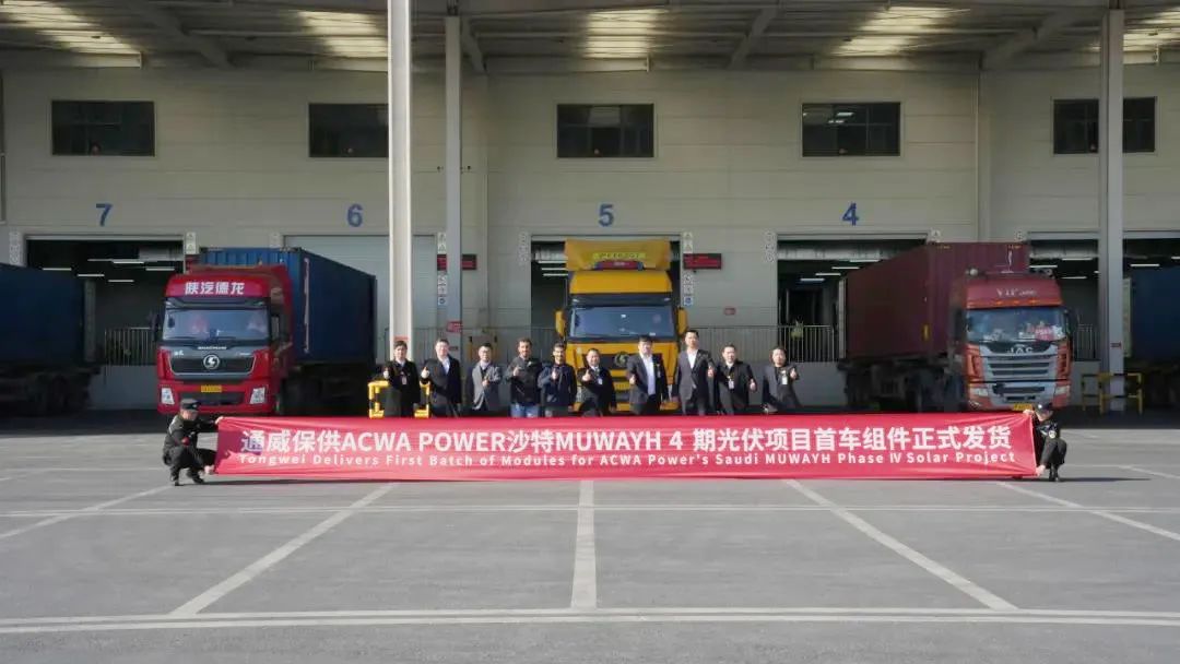 通威“智”造奔赴中東!ACWA POWER沙特Al Muwayh項目首批組件發車