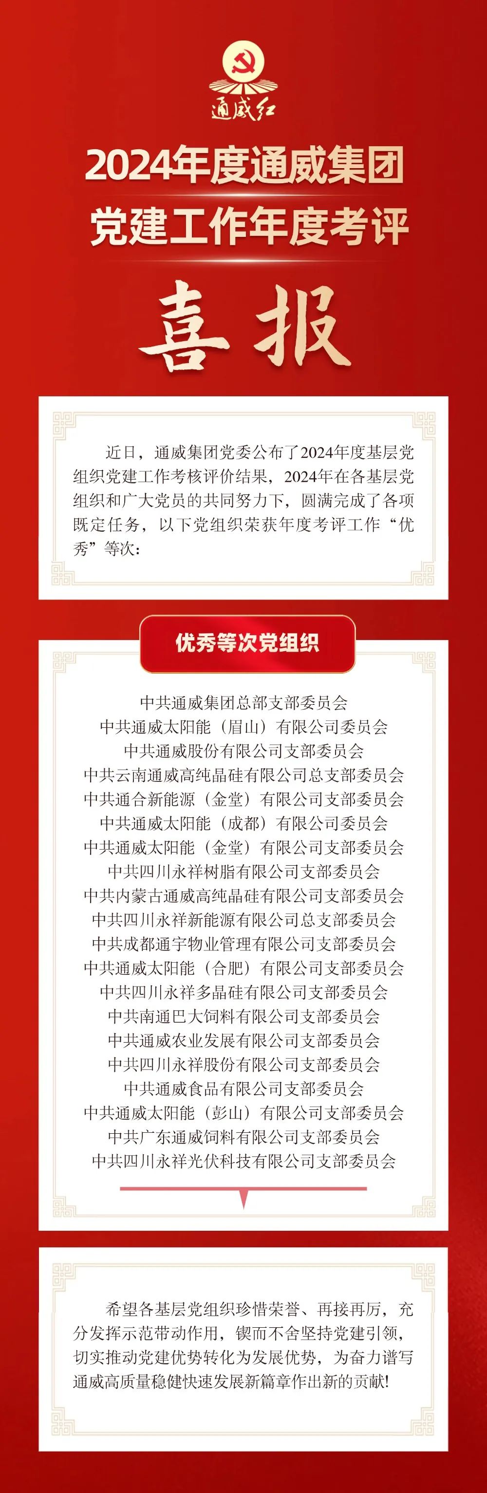 喜報!通威集團基層黨組織榮獲年度黨建工作考核優(yōu)秀等次!