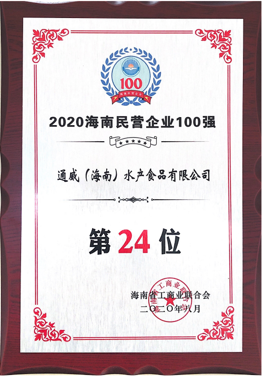 海南水產食品榮列“2020海南民營企業100強”榜單