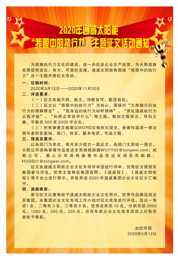 通威太陽能開展2020年“我眼中的執行力”征文活動