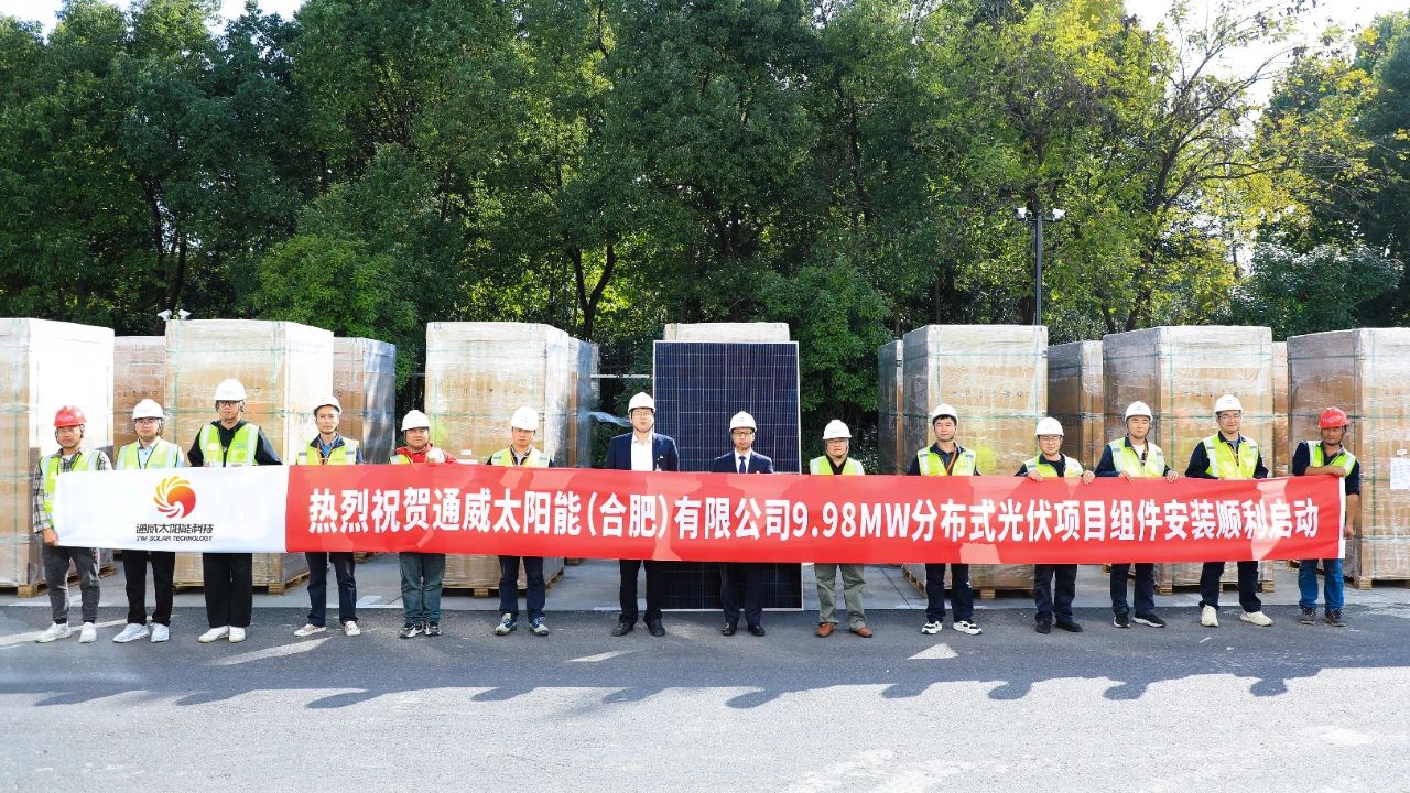通威太陽能科技合肥基地9.98MWp分布式屋頂光伏電站順利啟動組件安裝