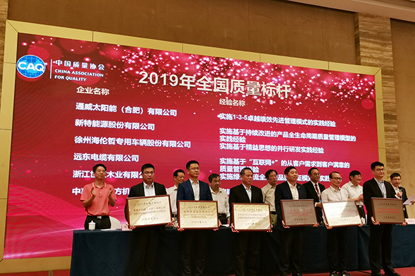 通威太陽能榮獲“2019年全國質量標桿”殊榮