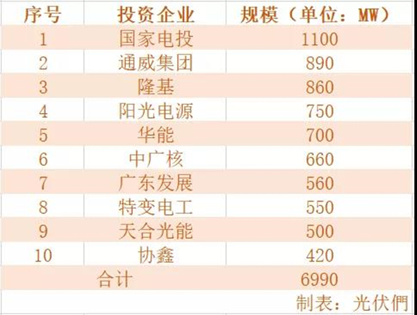 光伏們:國(guó)家電投、通威領(lǐng)銜首批光伏平價(jià)項(xiàng)目規(guī)模