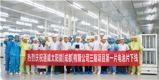 通威太陽能成都三期第一片“智能制造”高效晶硅電池片順利下線