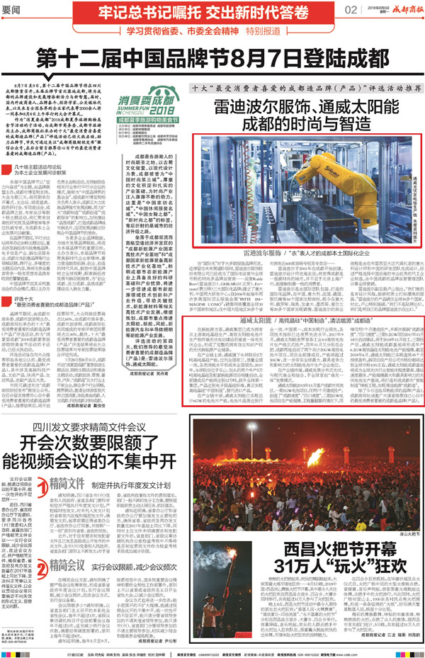 通威太陽能獲《成都商報》十大“最受消費者喜愛的成都造品牌(產(chǎn)品)”評選活動專題推薦