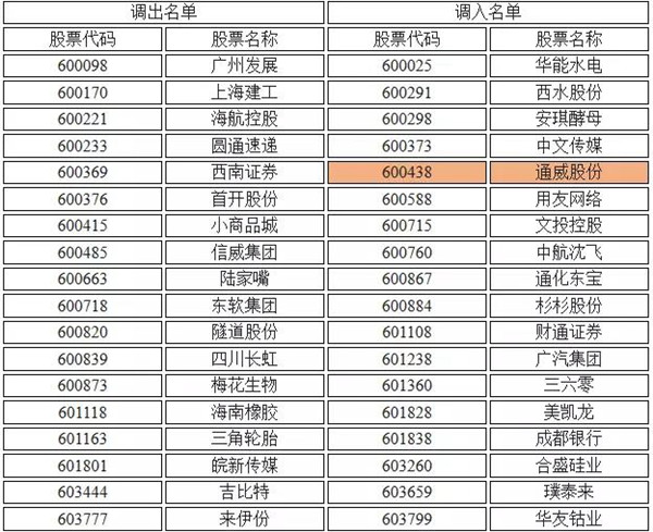 通威股份入選上證180指數樣本名單