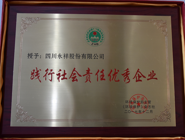 永祥股份榮獲“踐行社會責任優秀企業”榮譽稱號
