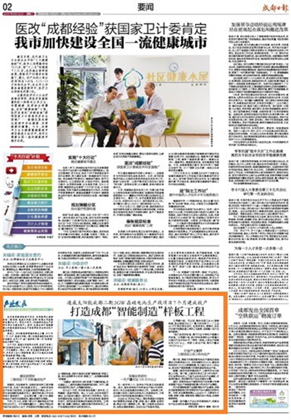 成都“智能制造”樣板工程——《成都日報》點贊通威太陽能二期項目