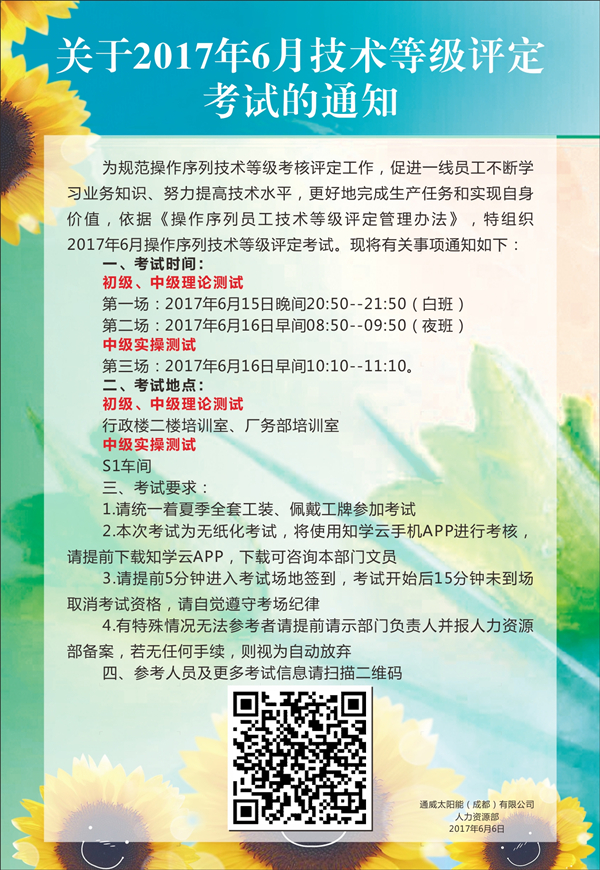 通威大學光伏學院開展2017年半年度操作序列技術等級評定工作