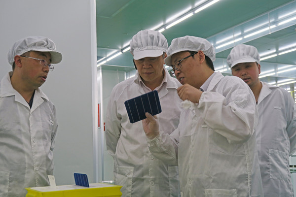四川省經信委總工程師黃靈調研通威太陽能成都公司