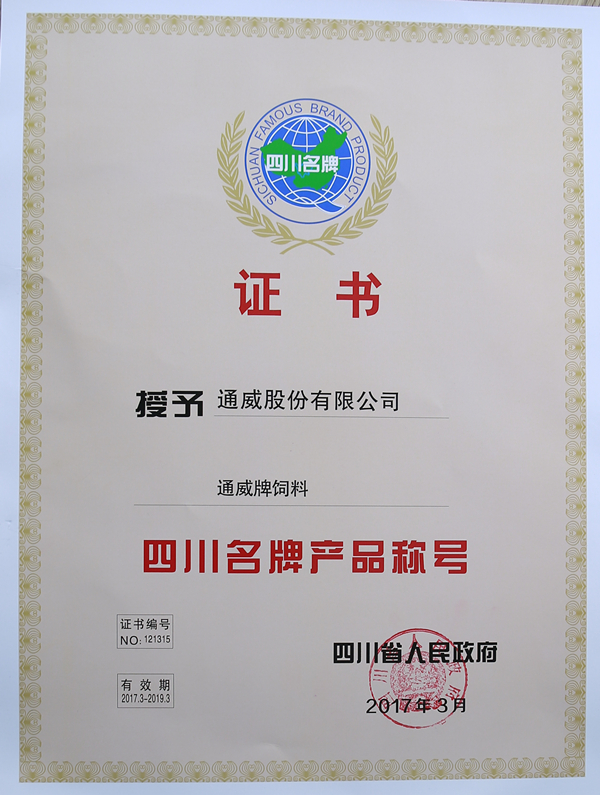 通威牌飼料蟬聯(lián)第十二屆四川名牌產(chǎn)品稱號(hào)