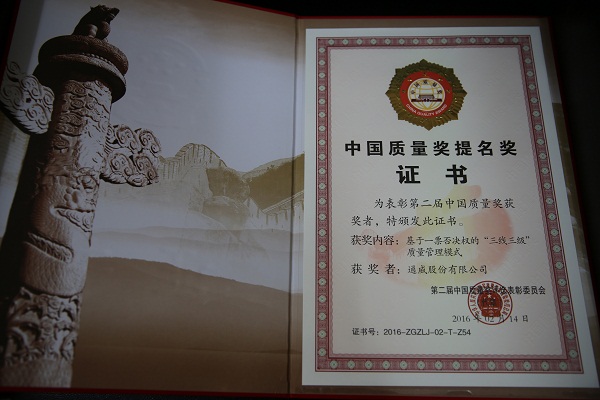 通威股份榮獲第二屆中國質(zhì)量獎提名獎