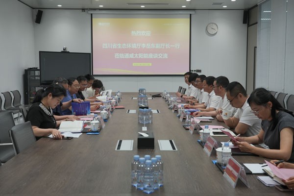 四川省生態(tài)環(huán)境廳黨組副書(shū)記、副廳長(zhǎng)李岳東一行蒞臨通威太陽(yáng)能(金堂)座談交流