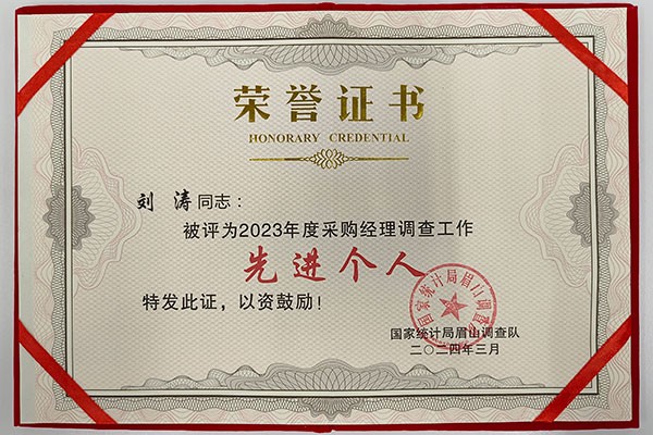 通威太陽能(眉山)有限公司員工榮獲“2023年度眉山市采購經(jīng)理調(diào)查工作先進(jìn)個(gè)人”表彰