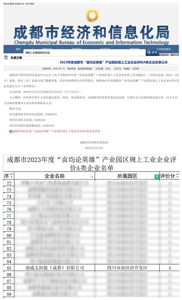 通威太陽(yáng)能雙流基地、眉山基地、通合項(xiàng)目分別榮列2023年度“畝均論英雄”產(chǎn)業(yè)園區(qū)規(guī)上工業(yè)企業(yè)評(píng)價(jià)A類企業(yè)