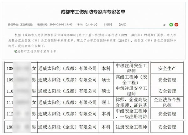 通威太陽(yáng)能6名專家成功入選成都市工傷預(yù)防專家?guī)?/div>