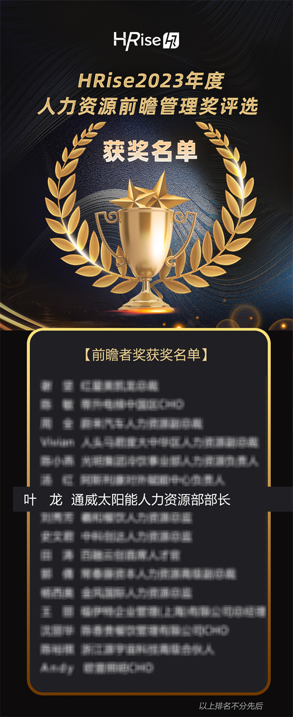 通威太陽能科技有限公司總經理助理葉龍榮膺HRise2023年度人力資源前瞻獎