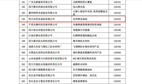 “永祥牌多晶硅”、“永祥牌聚氯乙稀”喜獲第十二屆四川名牌產品稱號