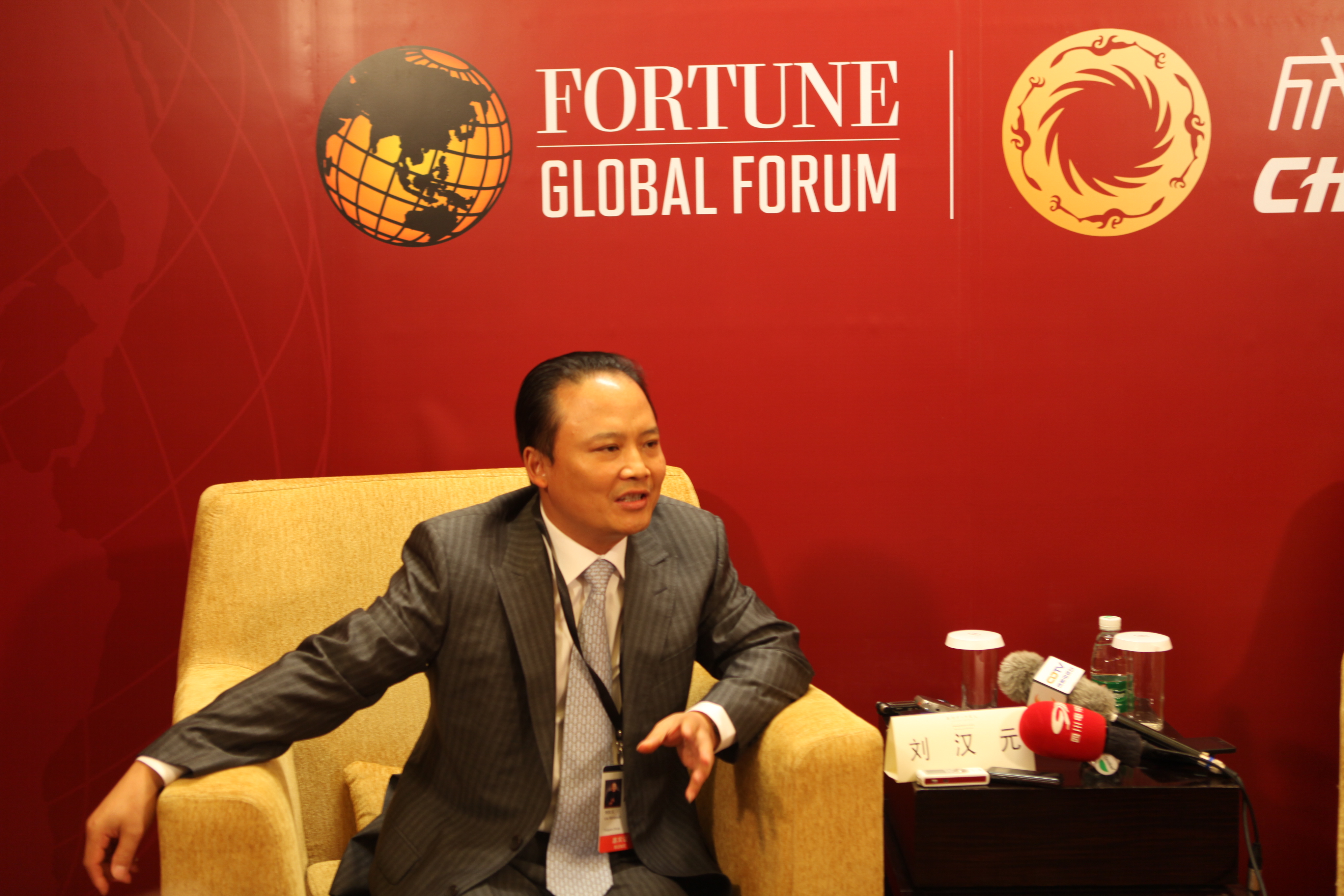 劉漢元主席2013財富全球論壇期間接受多家媒體聯合專訪