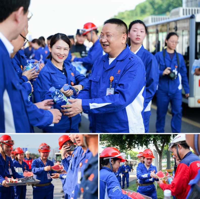 現(xiàn)場(chǎng),李總和股份領(lǐng)導(dǎo)們親自將一瓶瓶清涼飲品和一塊塊甘甜多汁的西瓜遞到員工手中,并親切地詢問大家的工作與生活情況,反復(fù)叮囑:“天氣熱,大家一定要注意身體,多喝水,防止中暑?!边@簡(jiǎn)單卻溫暖的話語(yǔ),如同夏日里的一縷清風(fēng),瞬間拂去了員工們臉上的疲憊與汗水?!案兄x領(lǐng)導(dǎo)們的關(guān)心!”員工們的笑容是對(duì)這份關(guān)懷最好的回應(yīng)。李總對(duì)所有在炎炎夏日依舊堅(jiān)守在生產(chǎn)和工程建設(shè)前線的所有永祥家人們表示衷心的感謝,并叮囑大家一定要時(shí)刻緊繃安全弦,所有的工作都要以保障安全為前提,要注意安全生產(chǎn)和工程管理,做好高溫作業(yè)保護(hù)及消暑降溫工作。現(xiàn)場(chǎng)工作人員紛紛表示,一定會(huì)堅(jiān)守崗位,履職盡責(zé),用心工作,用智慧工作,用只爭(zhēng)朝夕的精神工作,為公司發(fā)展添磚加瓦。