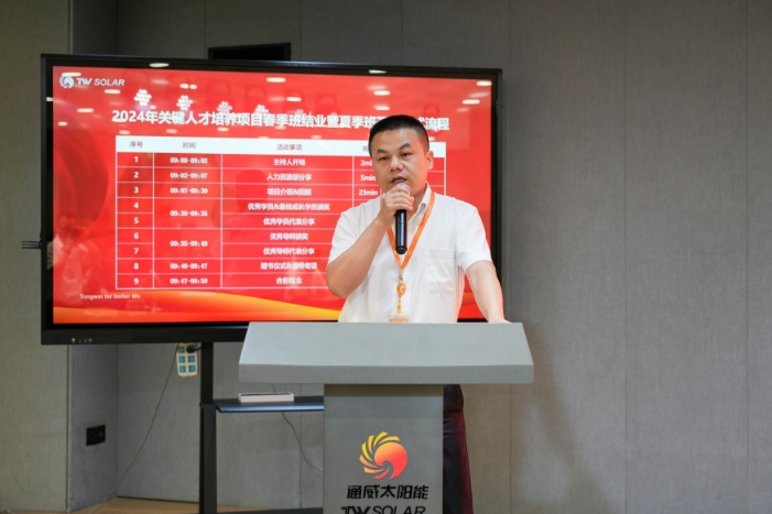 聚焦關鍵人才培養(yǎng),夯實人才梯隊建設,8月1日,通威太陽能(成都)有限公司成功舉辦2024年關鍵人才培養(yǎng)項目春季班結業(yè)暨夏季班開班儀式,各業(yè)務部門負責人、春季班優(yōu)秀學員及導師,以及即將踏上新征程的夏季班學員共計80余人共同見證了這一重要時刻。
