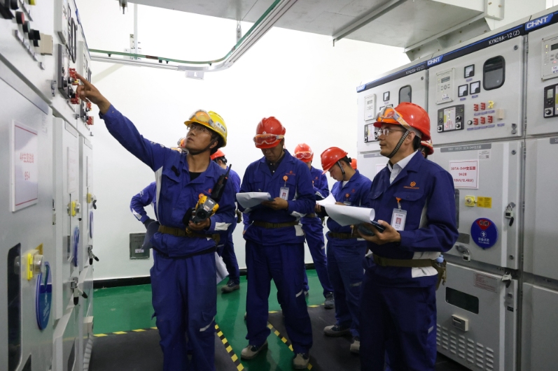 進一步落實執行員工技能提升專項工作,7月24日,通威硅能源(內蒙古)項目指揮長游書華,指揮長助理武永斌、官君帶隊,深入301 變電總站進行JCC 專項檢查。各部門負責人、工段長及相關安全管理人員參加。