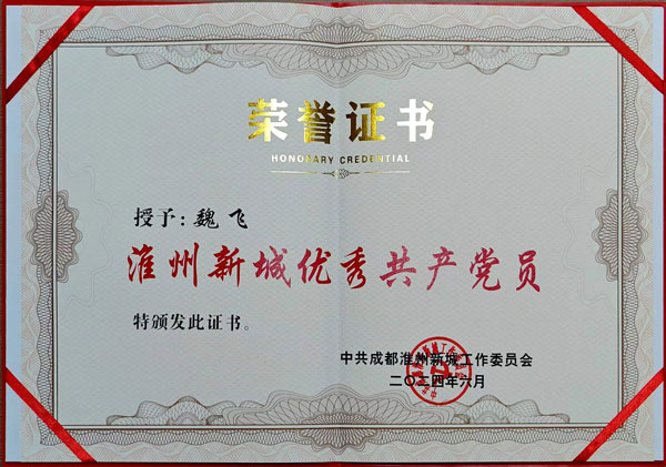 漆剛同志榮獲“淮州新城優秀黨務工作者”