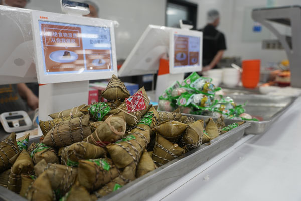 各公司食堂在用餐時段為員工們準備了香粽與咸鴨蛋