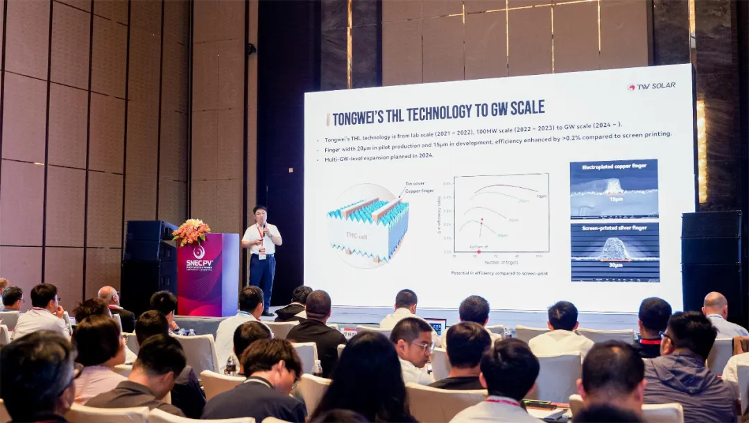 會上,通威股份光伏技術中心電池開發部部長孟夏杰分享了《通威N型鈍化接觸電池,從研發走向量產》的主題演講,介紹了通威在N型電池技術研發領域的產研結合成果。