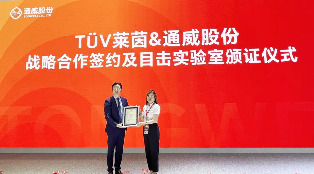 TüV萊茵戰(zhàn)略合作簽約及目擊實(shí)驗(yàn)室頒證儀式舉行,獲得該資質(zhì)后意味著通威可依據(jù)檢測標(biāo)準(zhǔn),利用自身實(shí)驗(yàn)室資源為光伏組件產(chǎn)品進(jìn)行現(xiàn)場檢測,快速向客戶推出產(chǎn)品、提升客戶服務(wù)質(zhì)量。