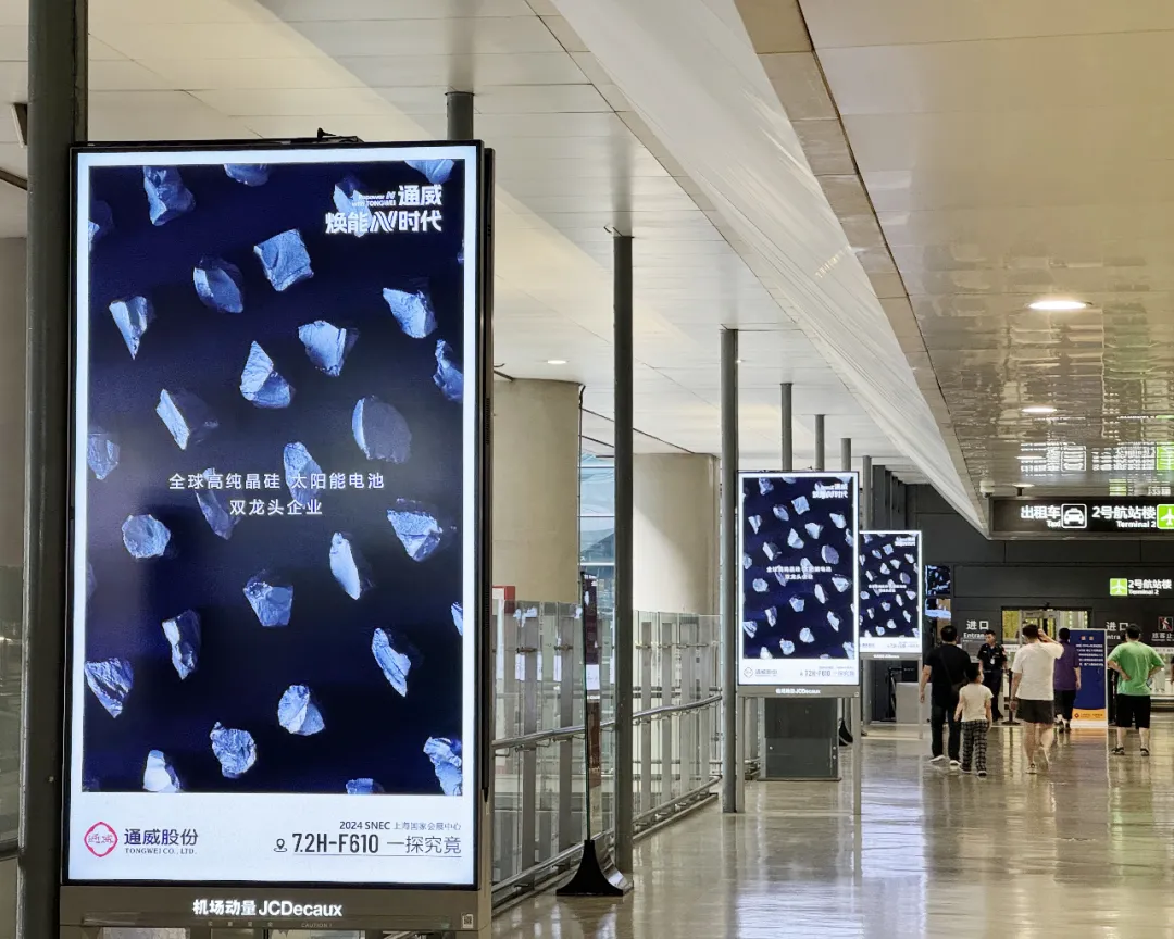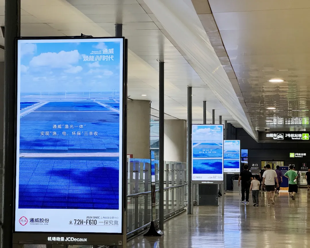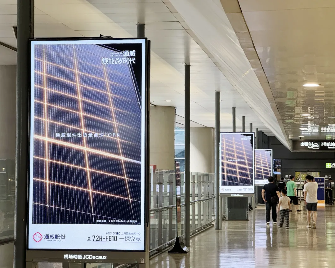 6月13日-15日,第十七屆(2024)國際太陽能光伏與智慧能源(上海)大會暨展覽會將在上海國家會展中心隆重舉行。隨著SNEC進入倒計時,通威光伏新能源產業鏈品牌形象廣告登陸上海虹橋國際機場、上海浦東國際機場、上海虹橋高鐵站、上海國家會展中心場館內外等各大交通樞紐及高客流量區域,向世界展現“中國技術”“中國智造”,為全球光伏產業高質量發展注入蓬勃動能。