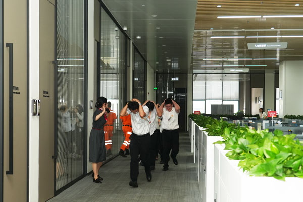 隨著演練開始的信號發出,模擬的地震情景立即啟動。當地震預警響起,所有員工都迅速而有序地按照既定的疏散路線撤離到升旗廣場。在整個過程中,各應急小組顯示出高度的協同作戰能力,從發出警報、組織疏散到醫療救護和后勤保障,每一步都井然有序,嚴格按照預案進行。