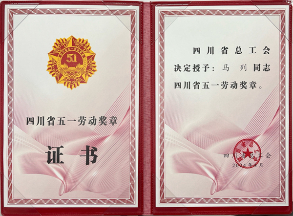 “四川省五一勞動獎章”證書