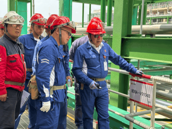 根據安全檢查及事故隱患排查清單,杜總帶隊深入精餾工段裝置現場,分別到191罐區(qū)、卸車平臺、803塔區(qū)、808反歧化等裝置進行安全檢查,檢查內容涉及現場安全管理、安全應急管控、公司規(guī)章制度的宣貫及執(zhí)行、生產工藝及設備運行以及重大隱患判定標準、一二期互通管線施工注意事項、鹽電閥門、蒸發(fā)冷清洗、球罐設備特檢情況等多項檢查。檢查中,杜總帶領檢查人員認真將現場情況和工段臺賬一一對照檢查,對發(fā)現的偏差項要求按“四定”原則落實整改,確保關鍵裝置始終處在安全可控狀態(tài)。