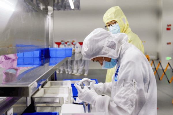 硅片檢驗技能競賽現場,選手正對硅片進行檢驗篩選