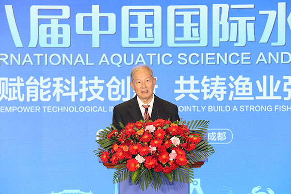 大會(huì)現(xiàn)場,國務(wù)院參事、農(nóng)業(yè)農(nóng)村部原副部長于康震,農(nóng)業(yè)農(nóng)村部原總畜牧師張?zhí)熳簦粚萌珖f(xié)常委、中國科學(xué)院院士、北京大學(xué)生命科學(xué)學(xué)院教授朱作言,中國科學(xué)院院士、北京大學(xué)生命科學(xué)學(xué)院教授趙進(jìn)東,中國工程院院士、中國海洋大學(xué)水產(chǎn)學(xué)院名譽(yù)院長麥康森,中國科學(xué)院院士、發(fā)展中國家科學(xué)院院士、中國科學(xué)院水生生物研究所研究員桂建芳,農(nóng)業(yè)農(nóng)村部漁業(yè)漁政管理局原局長、中國漁業(yè)協(xié)會(huì)會(huì)長趙興武,四川省農(nóng)業(yè)農(nóng)村廳黨組書記蔣剛,通威股份董事長、CEO劉舒琪,全國水產(chǎn)技術(shù)推廣總站站長、中國水產(chǎn)學(xué)會(huì)秘書長崔利鋒,中國飼料工業(yè)協(xié)會(huì)常務(wù)副會(huì)長兼秘書長王宗禮,中國水產(chǎn)科學(xué)研究院原副院長、中國漁船漁機(jī)漁具行業(yè)協(xié)會(huì)會(huì)長李杰人,中國水產(chǎn)流通與加工協(xié)會(huì)會(huì)長崔和,中國水產(chǎn)科學(xué)研究院副院長王玉梅,巴基斯坦駐成都總領(lǐng)事館代總領(lǐng)事胡楠,以色列駐成都總領(lǐng)事館副總領(lǐng)事施賽玉,教育部教學(xué)指導(dǎo)委員會(huì)委員、四川農(nóng)業(yè)大學(xué)學(xué)術(shù)委員會(huì)主任周小秋,國家大宗淡水魚產(chǎn)業(yè)技術(shù)體系首席科學(xué)家戈賢平,國家蝦蟹產(chǎn)業(yè)技術(shù)體系首席科學(xué)家何建國,國家特色淡水魚產(chǎn)業(yè)技術(shù)體系首席科學(xué)家楊弘,四川省水產(chǎn)局局長何強(qiáng),四川省水產(chǎn)局副局長羅本彬,通威股份農(nóng)牧總裁、通威農(nóng)發(fā)總經(jīng)理郭異忠,通威集團(tuán)黨委書記、副總裁黃其剛,中國水產(chǎn)學(xué)會(huì)副理事長、通威股份副總裁張璐,漁美康集團(tuán)總裁劉紹春,歐洲自然科學(xué)院院士、上海芯生機(jī)農(nóng)業(yè)董事長鄒國忠等重磅嘉賓出席大會(huì)。