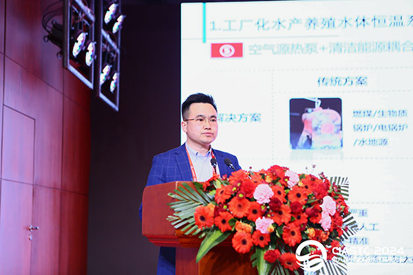 四季沐歌科技集團熱能營銷中心總監楊洪義作《雙碳目標下空氣源熱泵在水產養殖行業中的應用前景》主題演講時介紹了依托CAS清潔能源智慧耦合操作系統,集合應用空氣能、水地源、太陽能、光伏、儲能等熱泵+產品,為園區、住宅、醫院、學校、酒店、農牧漁等提供采暖、制冷、熱水等清潔能源耦合解決方案。